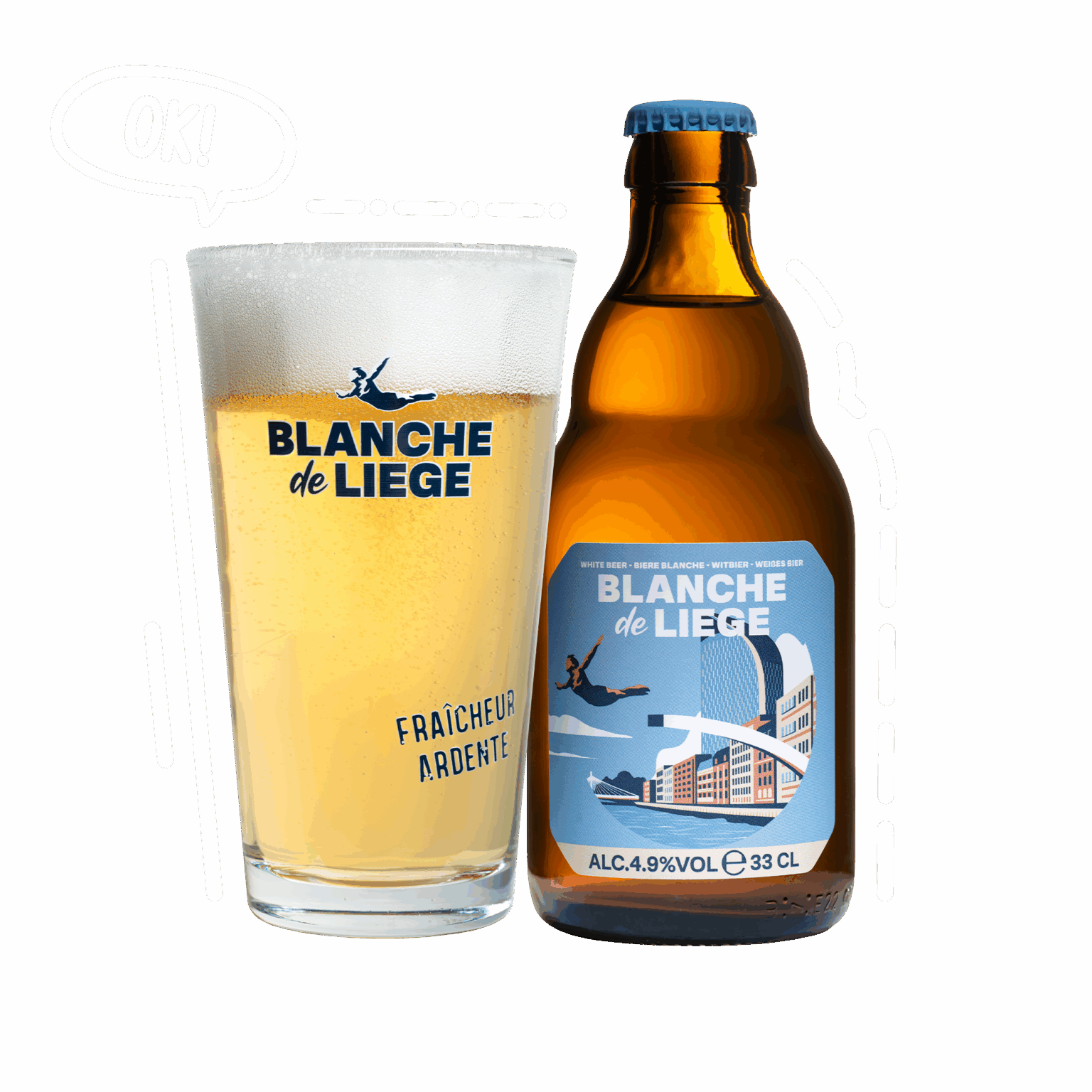 Comme l’iconique plongeur brave les eaux profondes de la Meuse, plonge avec nous dans la fraicheur ardente d’une bière aux valeurs liégeoises. Blanche de Liège, un breuvage bien de chez nous qui te fait la promesse d’une expérience rafraîchissante, où passion et tradition se rencontrent.